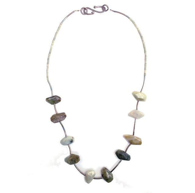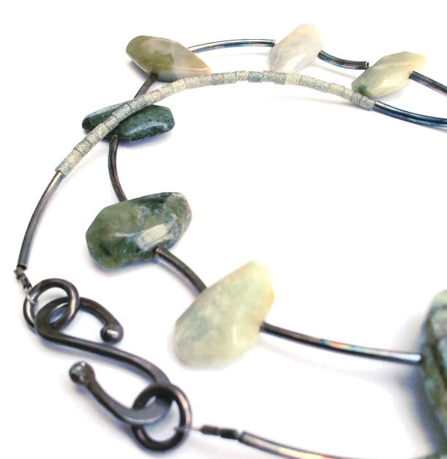 Collier van geoxideerd zilveren onderdelen met jade.