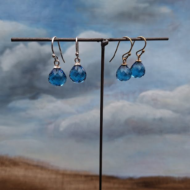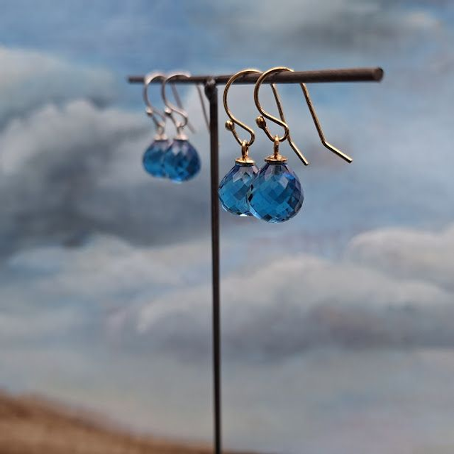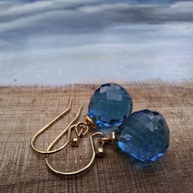 Verguld zilveren oorbellen met hydro quartz druppels.