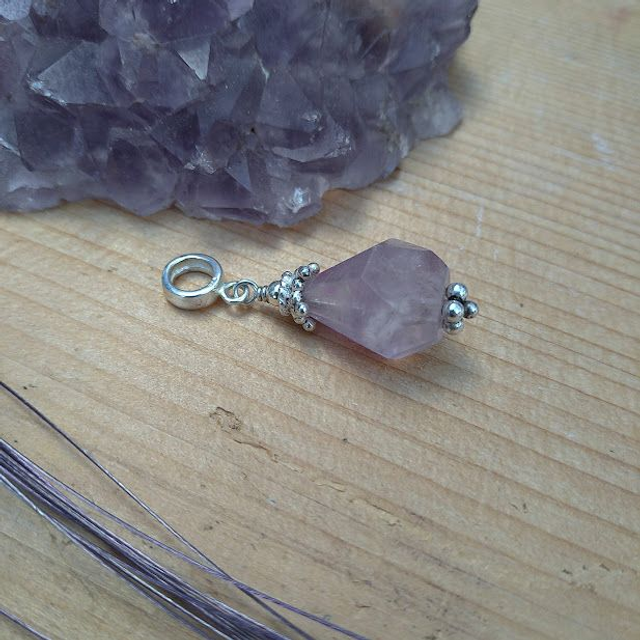 Zilveren hanger met facet amethist. Doorsnee van het hanger oog is 5 mm.