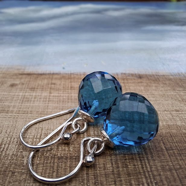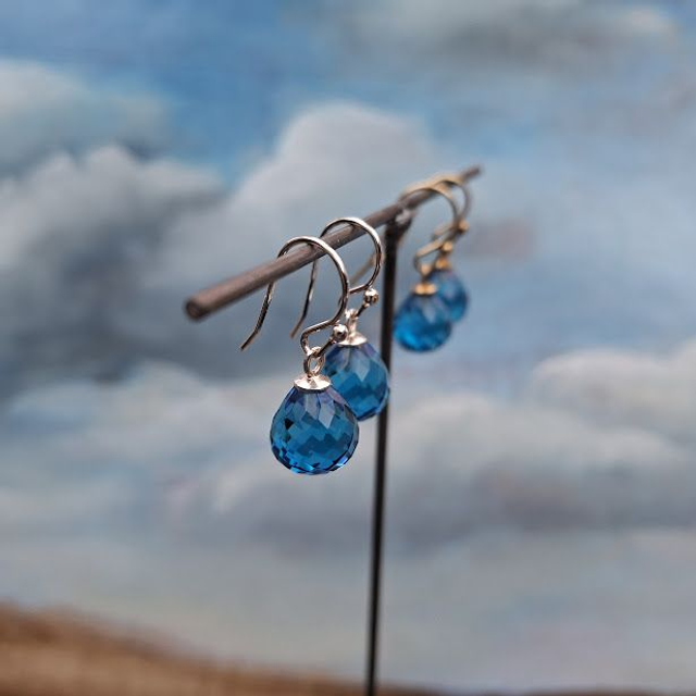 Zilveren oorbellen met blauwe hydro quartz druppels